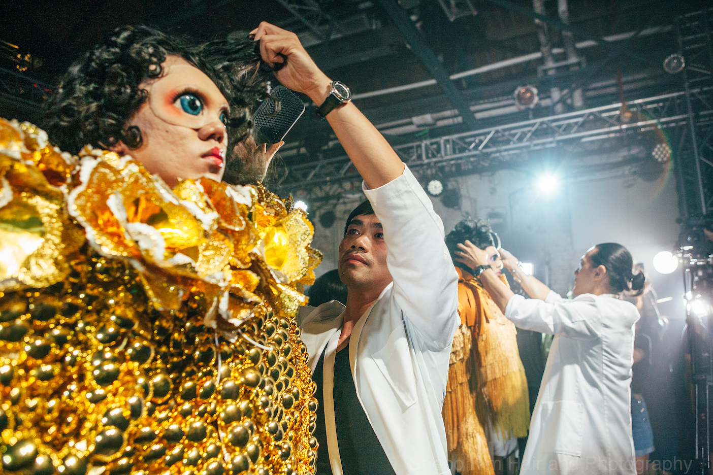 …while Eros showcased an amazing three models, working cleverly so the team could evolve the hair on-stage. Using mechanics and inflatable hair the show was pure genius combined with amazing prosthetics.