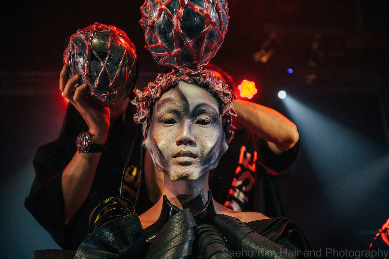 X-presion released their dark and directional POLLUTION collection to the audience, where three models were transformed on stage using pieces and masks to stunning effect.