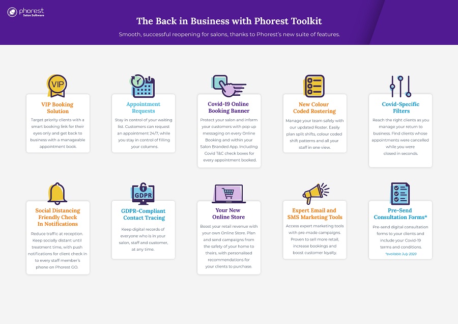 This June, features made available to all Phorest users will help to guarantee salon owners a safe and successful re-opening. They include:
